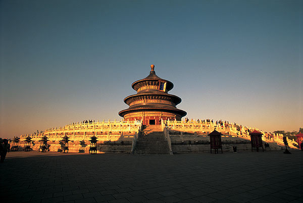 上午:早餐后,游览世界上保存最完整的皇家园林—【颐和园】(约2小时,皇家园林,一边是以昆明湖为蓝本;一边以水乡江南为蓝本,无数精妙精致密布其间。)乘坐【皇家龙舟】游览碧波荡漾、景色优美的水上明珠——昆明湖,在龙舟上,远眺皇家园林中的“三山五园”万寿山及玉泉山的美景。参观【珐琅工艺品】沿途可欣赏到世纪之交的【中华世纪坛】、【中央电视台及电视塔】和【中关村电子一条街】。 游览游览明清两朝祭祀上天的场所,世界上保存最完整的皇家祭天建筑群-【天坛公园】(约1小时,不含三大殿)。傍晚:回酒店休息