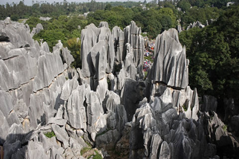 昆明→(空调旅游大巴)→石林→(空调旅游大巴)→九乡→(空调旅游大巴)→昆明
